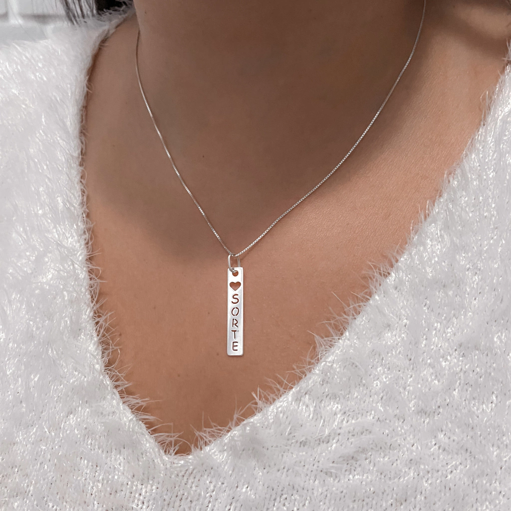 Colar Plaquinha Sorte - Material Prata 925 - Possui 1 pingente - Não acompanha Caixinha - Tamanho Corrente Veneziana 45cm